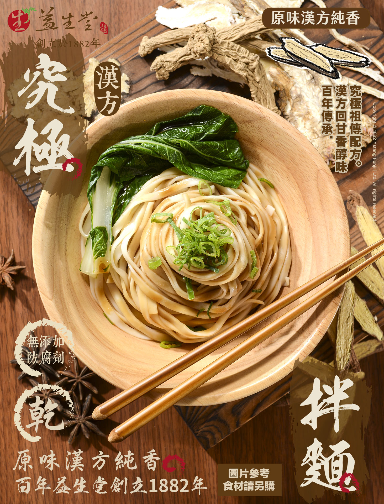 【2025 熱門破千包】益生堂究極拌麵(乾)【原味漢方純香】熱門破千包!頂級拌麵醬料濃度回甘.原味漢方9種食材,百年傳承 9分鐘快速煮食,臺南關廟麵滿足Q口,益生堂月銷破600包,一吃就愛上滿足!