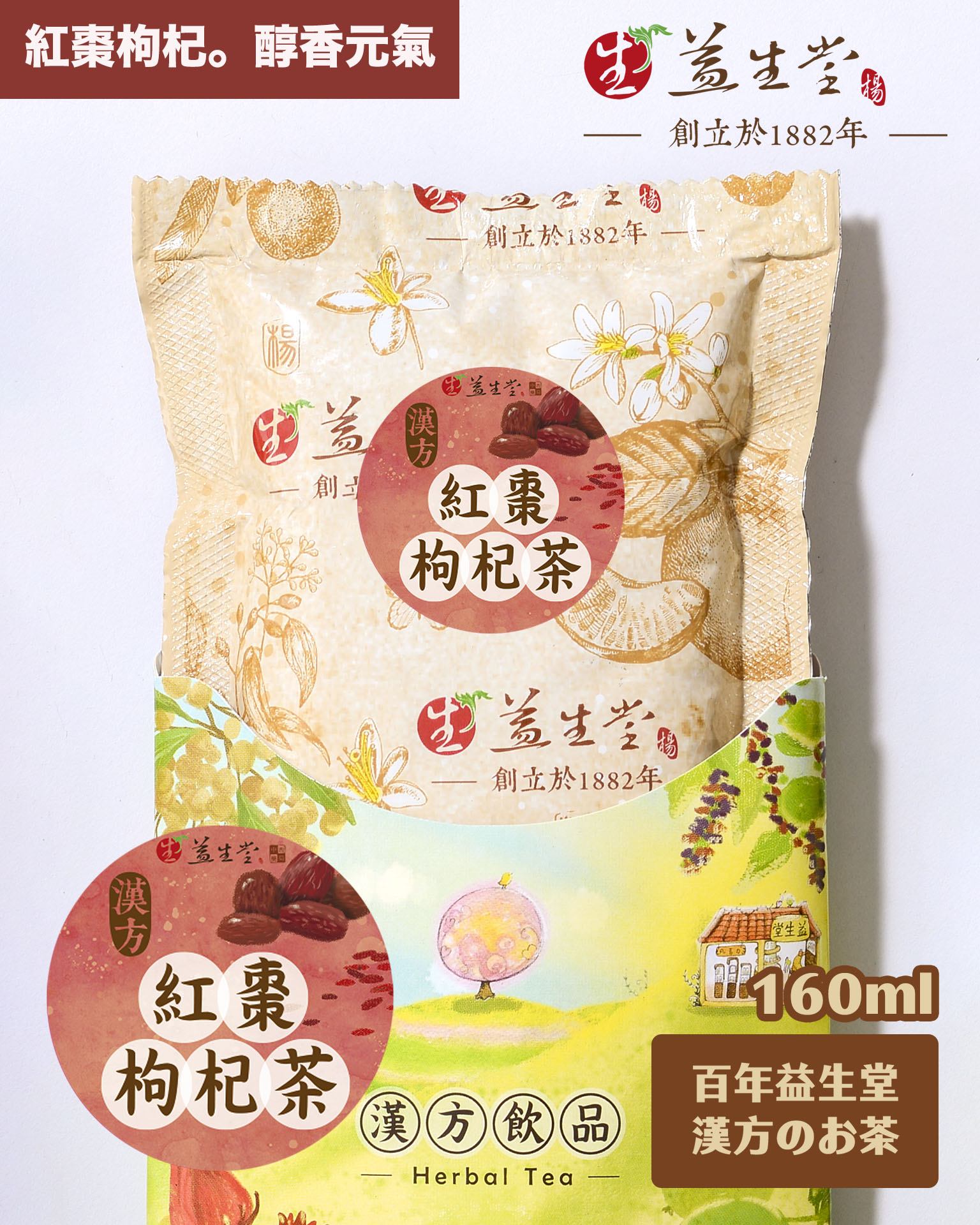【2026 元氣提升】【益生堂。凡吉力】漢方紅棗枸杞茶【漢方飲品系列】(160ml/包)~HOT 紅棗枸杞元氣明亮熬煮製作,提升體力濃郁,保留原味濃度提升滋味,男女老少皆可飲用!!!