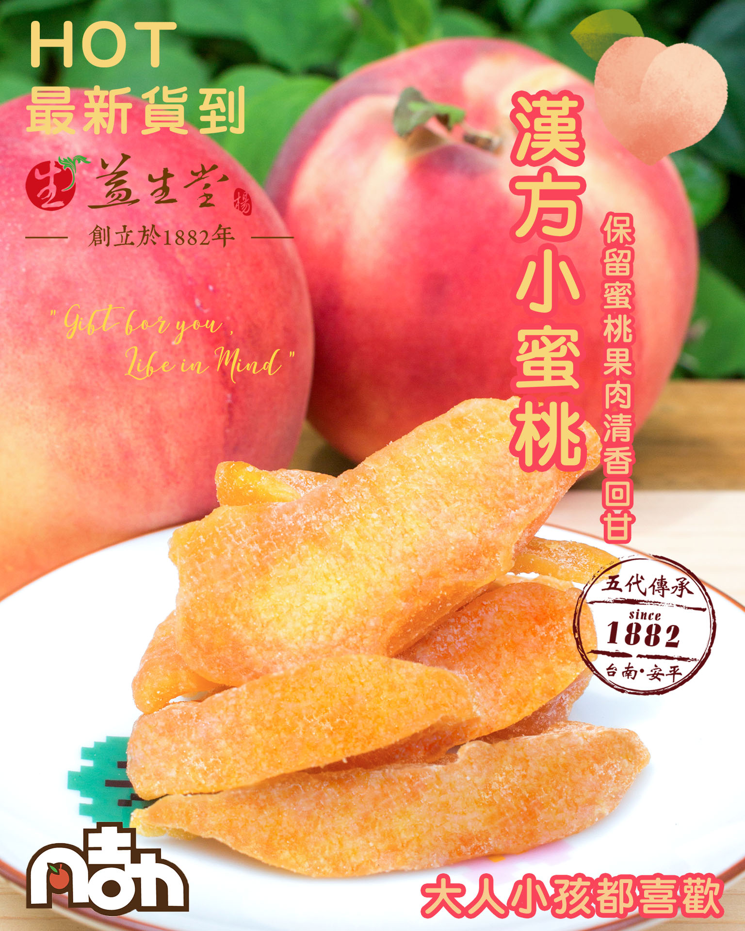 【益生堂。凡吉力】漢方小蜜桃 ~2026 HOT原始水蜜桃黃橙果肉香氣,口感纖維繚繞在口中,臺灣珍貴種植,臺灣產水蜜桃製作 保留原來果肉幸福滋味 特別蜜桃口感適中清香,一塊塊香氣在嘴中繚繞!!!