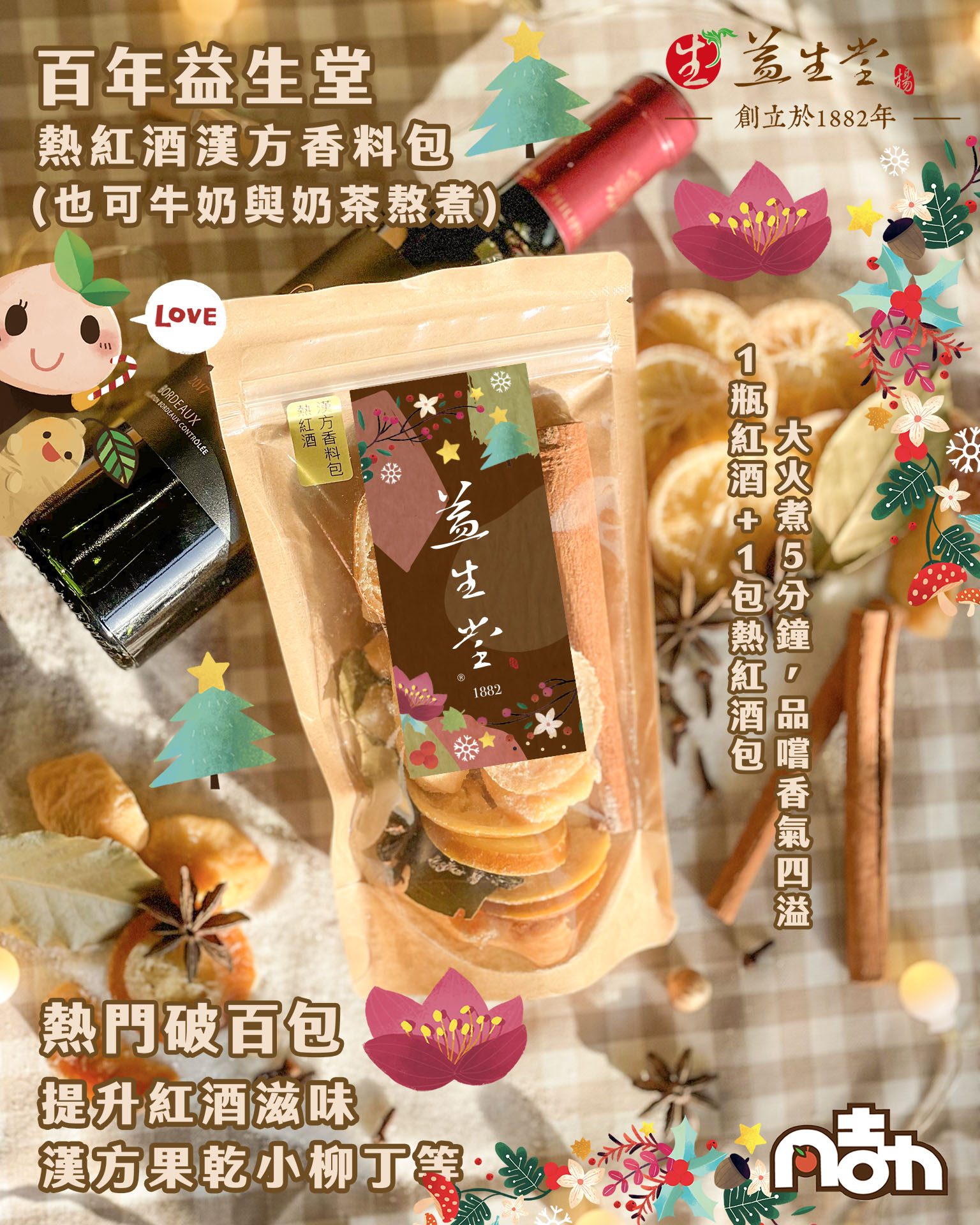【熱門破百包】益生堂熱紅酒漢方香料包~ 熱銷破百包,益生堂配方提升紅酒香氣與風味,獨家加入小蘋果、柳丁果肉,一瓶紅酒+一包熱紅酒大火煮5分鐘!【也可煮牛奶、奶茶】