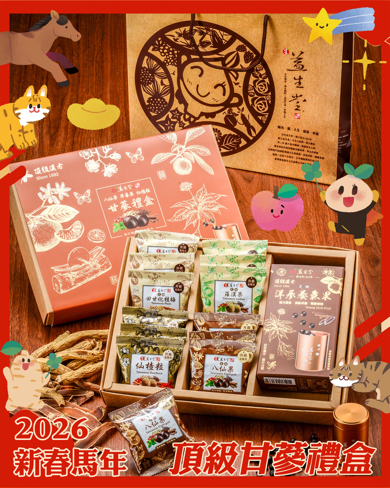 【益生堂。凡吉力】益生堂甘蔘禮盒 (洋蔘果1瓶 + 隨身12小包裝) 2026 HOT破千盒!經典雋永,益生堂洋蔘果1瓶 + 熱門八仙果、仙楂粒、化核梅、羅漢果隨身各x3包,送禮心意雋永【含禮袋款】