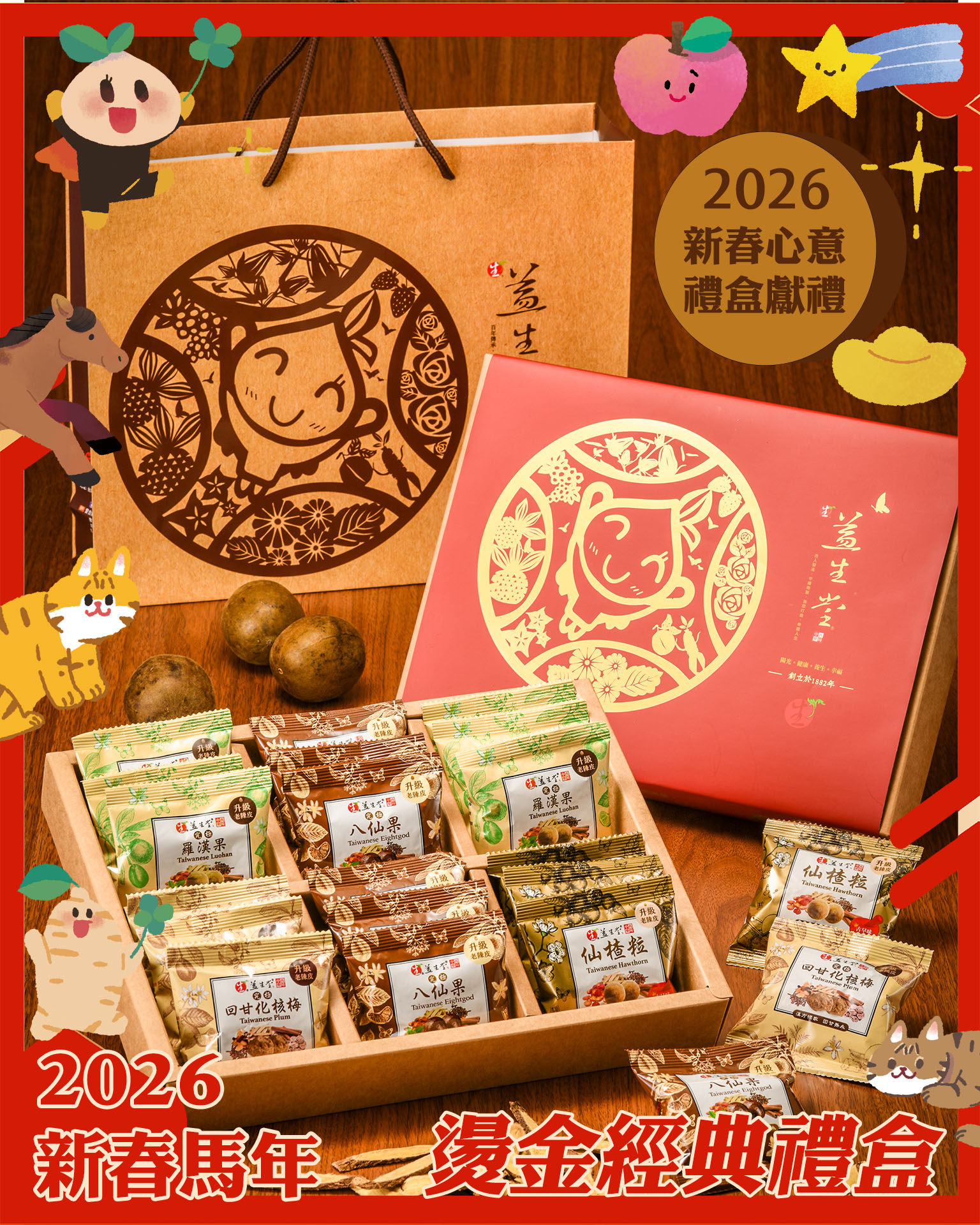 【益生堂。凡吉力】益生堂燙金經典禮盒 (隨身18小包裝) 2026 HOT破百盒!經典雋永,益生堂熱門八仙果、羅漢果隨身各x6包、仙楂粒、化核梅隨身各x3包,燙金送禮雋永【含禮袋款】